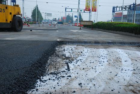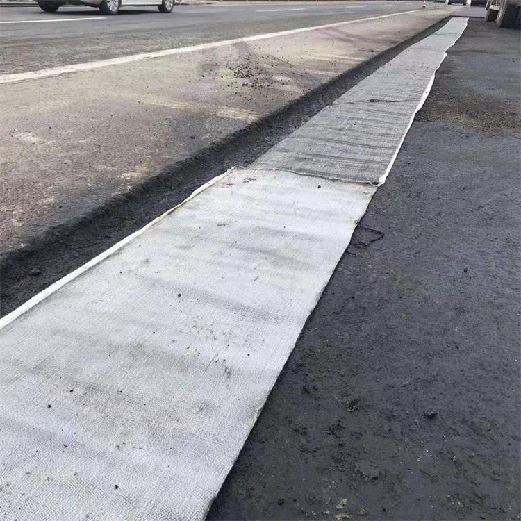 Laying fiberglass grid on asphalt pavement