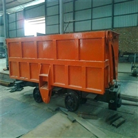 The MCC4-7 single-sided curved track side unloading mining car is mainly composed of wheel assembly, frame, pin shaft, carriage, unloading curved track, flip wheel, pin shaft, door hook, carriage door, supporting iron rod and other components. Transported by a rail pantograph, locomotive, or winch, it can only be unloaded towards the designated side on a curved track unloading platform that has been prepared for unloading. On one side of the carriage, it is connected to the frame with a shaft, and on the other side, there are unloading rollers installed on the door. When unloading, when the roller along the curved track slope transition device moves up the uphill section of the unloading curved track, causing the carriage to tilt and the movable side door to rotate around the pin axis and start unloading. When the roller runs downhill along the inclined unloading curved track, the carriage automatically descends and resets to the closed side door by its own weight. It should be noted that when the single-sided curved track unloading mining car is lifted from the bottom of the well to the unloading platform, the lifting winch should slow down to the slope unloading platform to ensure smooth unloading. Its advantage is that it has a larger capacity than dump trucks and fixed trucks, and can automatically and smoothly unload.