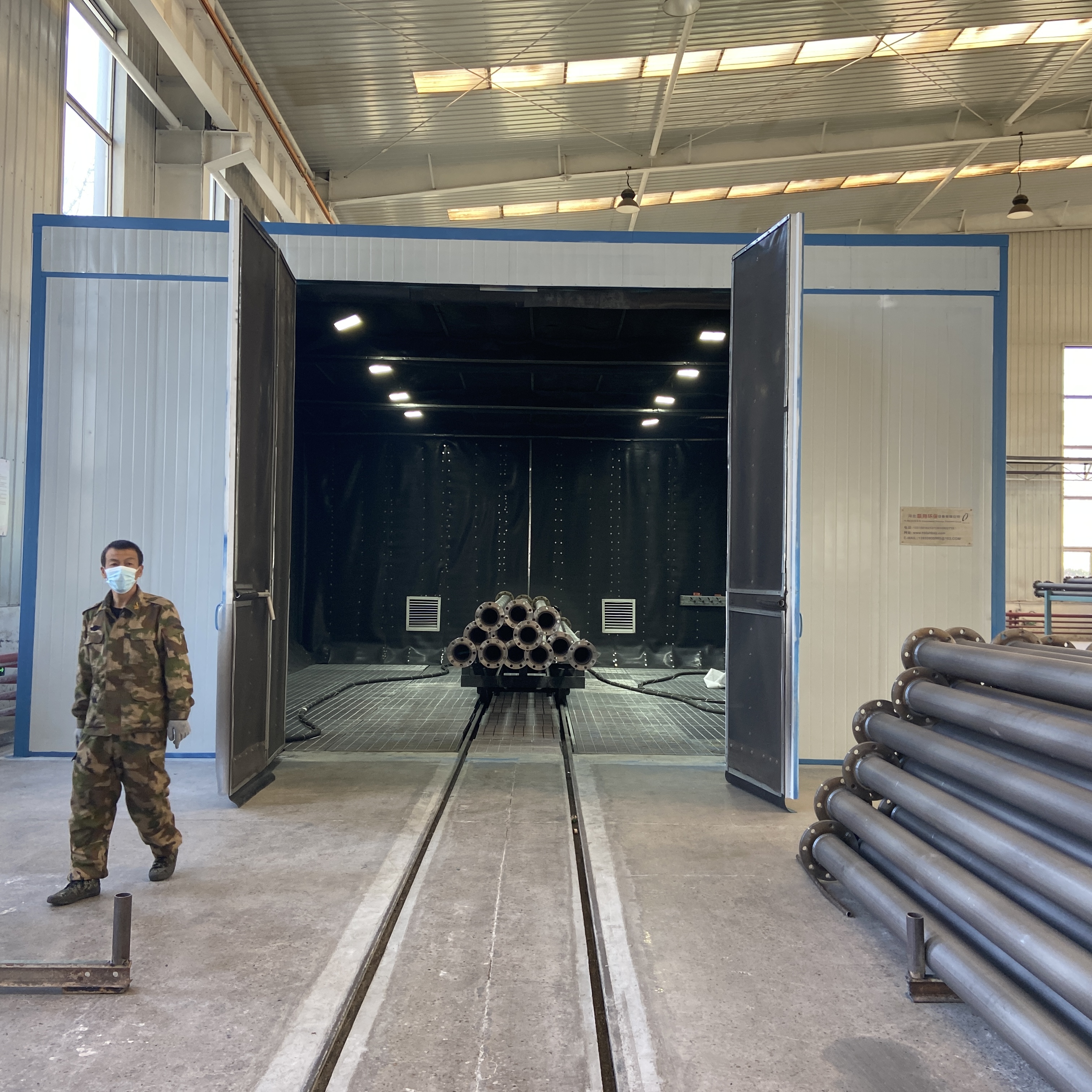 Pre treatment of sandblasting inner wall of sandblasting room pipe with automatic sandblasting and sand collection