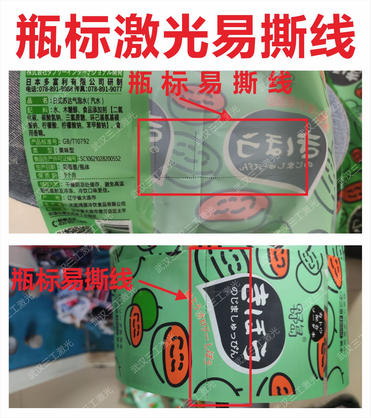 Food packaging bottle label laser easy tear line laser marking machine hot air label easy tear line marking