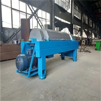 The drum and the screw rotate at a certain speed difference in the same direction and high speed. The material is continuously introduced into the inner cylinder of the conveying screw through the feeding pipe, accelerated and enters the drum. Under the action of the centrifugal force field, heavier solid substances deposit on the drum wall to form a sediment layer. The feeding spiral continuously pushes the deposited solid phase to the cone end of the drum and discharges it outside the machine through the slag discharge outlet. The lighter liquid phase forms an inner liquid ring, which continuously overflows from the large end overflow port of the drum and is discharged outside the machine through the discharge port. This machine can continuously feed, separate, wash, and discharge materials at full speed.