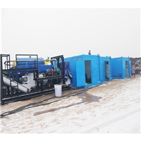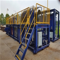 The mixture of oily sludge is sent to the vibration drying treatment module for full flow solid-liquid separation and vibration dehydration drying. The liquid phase is sent to the rapid settling treatment module for natural settling and solid-liquid separation. The separated liquid phase (clear water) is returned to the drilling team's solid control system to participate in the drilling cycle. The settled concentrated solid-liquid mixture is sent to the centrifugal separation treatment module for solid-liquid separation, and the separated liquid phase is returned to the rapid settling device. The solid phase separated by the vibration drying processing module and centrifugal separation processing module mentioned above is transported by the drilling cuttings collection and transportation module to the designated storage location.