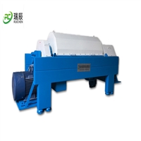 The suspension enters the drum from the feed pipe, and the solid particles are accelerated and settled on the inner wall of the drum under the action of centrifugal force. The settled particles are pushed by the blades of the screw conveyor and are discharged from the settling zone (straight section) through the drying zone (cone section) to the solid phase outlet; The clarified liquid phase overflowed from the overflow hole. Thus achieving automatic and continuous separation of solid and liquid phases.